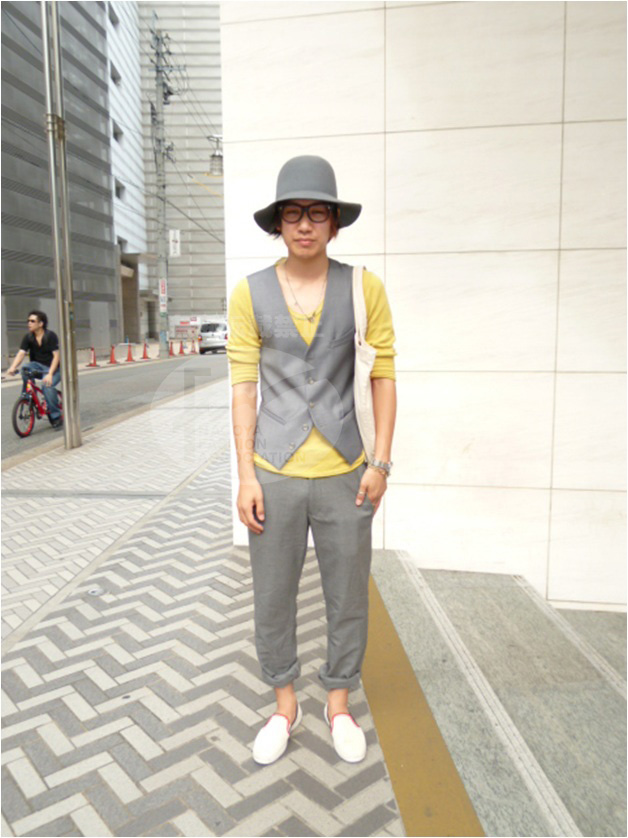 | コメント | シンプルイズザベスト★パンツ、ベスト、ハットをグレーで揃えることによって、トップスのイエローが引き立っています。 |