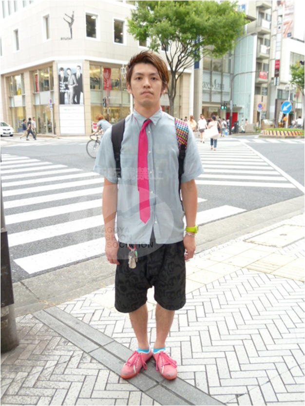 | コメント | ピンクのネクタイ×靴が目を引く☆ビビットカラーを上手くコーディネートの中に取り入れるところがおしゃれ!色使いを意識しているところが名古屋らしい!! |