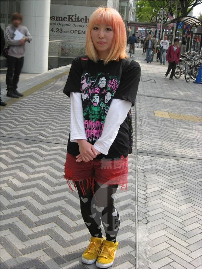 | コメント | パンクな感じで一見ハードに見えるけど、ハートのタイツで外しているところが可愛らしく名古屋らしい(=^・^=)イエローのスニーカーもコーディネートのアクセントになっています★ |