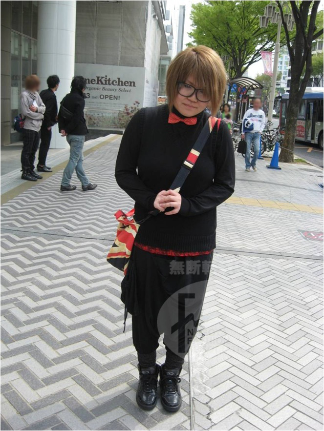 | コメント | 全身黒のスタイリングの中に赤の差し色が効いている(^u^)小物の蝶ネクタイやかばんの星条旗柄が可愛らしく名古屋らしいスパイシーガール! |