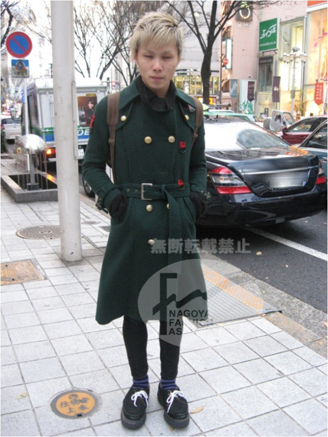 | コメント | 細身のラインを活かしたスタイリッシュなコーディネート!深い緑のコートと、ディテールの赤や金の組み合わせがクリスマスの雰囲気にぴったり合っていて名古屋らしい★ |