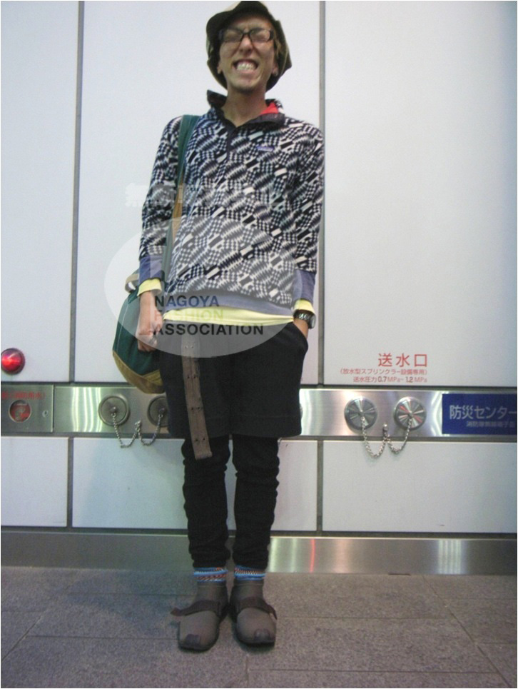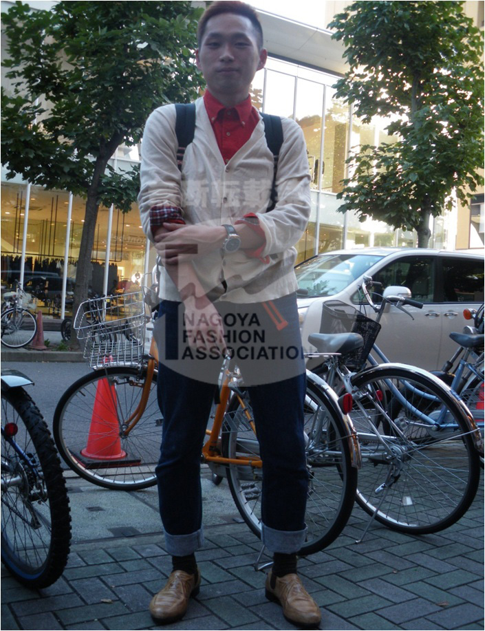 | コメント | 柄と差し色の使い方が絶妙!!暗くなりがちなモノトーンのコーディネートにトリコロールカラーでポイントを持ってきている所が、名古屋らしい。 |