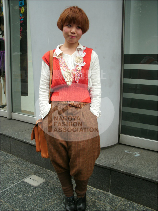 | コメント | 流行のサルエルを上手に着こなすバランス感覚!秋らしい色使いでクラシック+フェミニンにまとめたところが名古屋らしい。 |