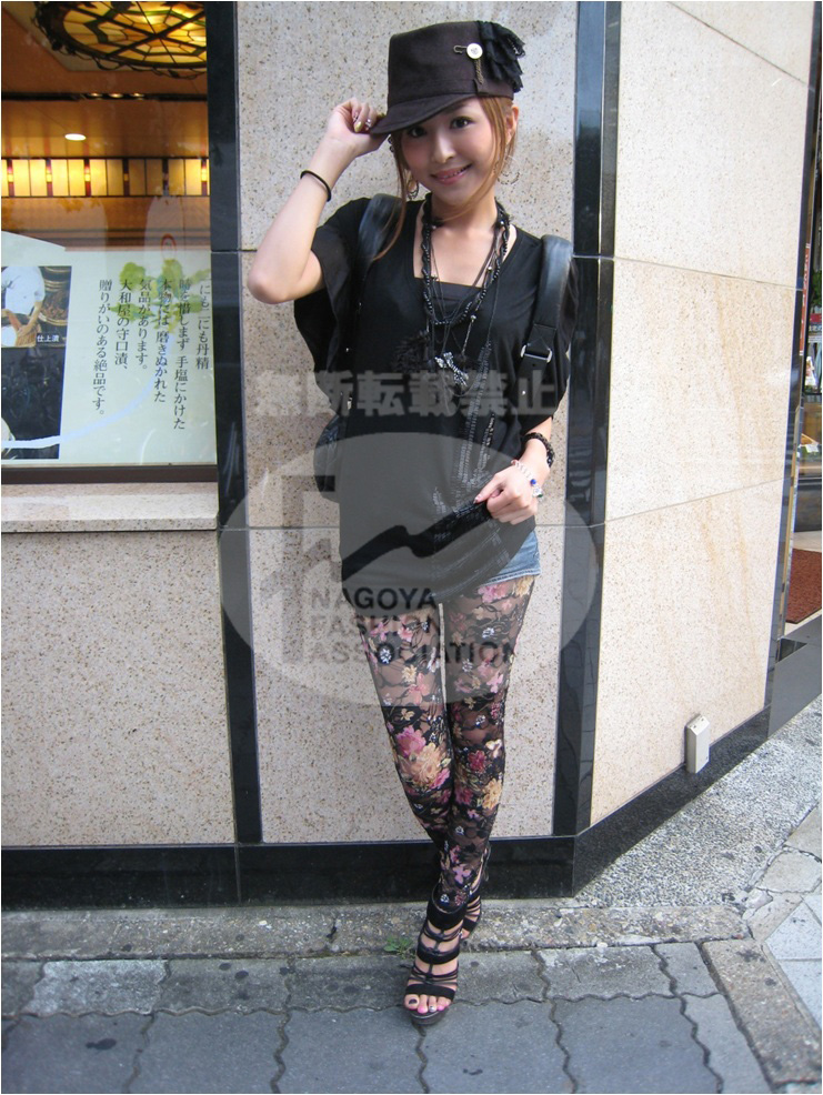| コメント | 派手な花柄のレギンスでパンチをきかせてモノトーンコーデに可愛さをプラスが名古屋らしい♥ハットのアクセも目を引きます☆ |
