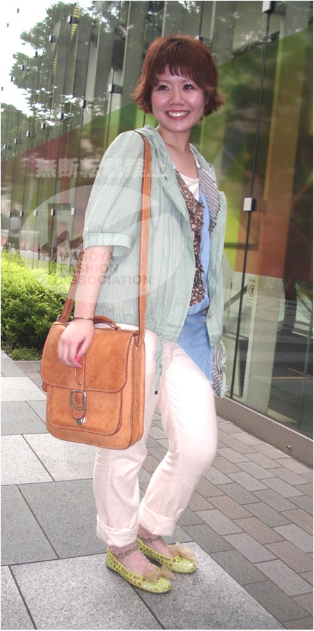 夏らしく、今年らしくボトムの裾をロールアップ!!!今年トレンドのボーダーをチラリと重ね着しているところがポイント。ただのマリン風ではなく、メタリックシルバーの斜め掛けバッグでシャープなイメージにまとめたところが名古屋のおしゃれ☆ |