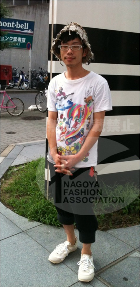 シンプルなコーディネートにドットのスニーカーを合わせ、帽子が特徴的なハイセンスなお兄さん。シンプルな中に個性を輝かせているところが名古屋っぽい!!\^^/ |