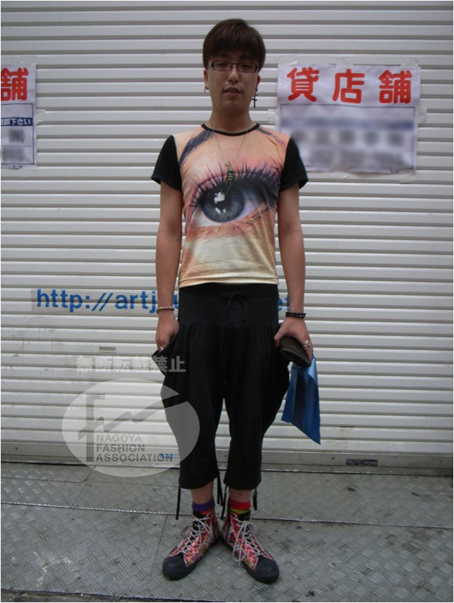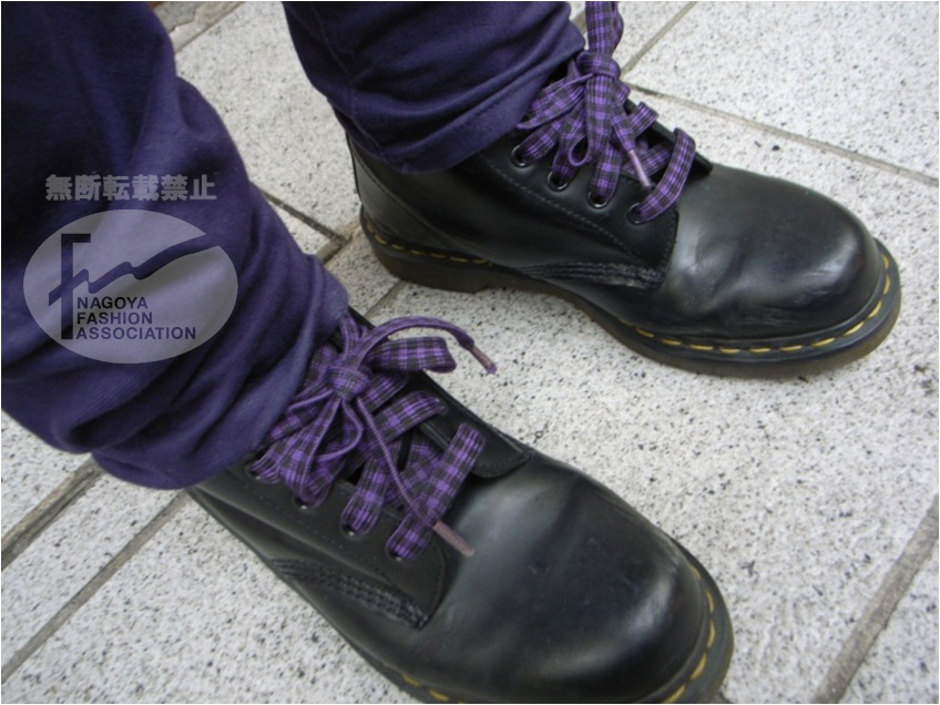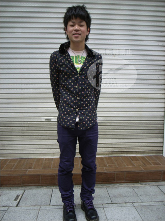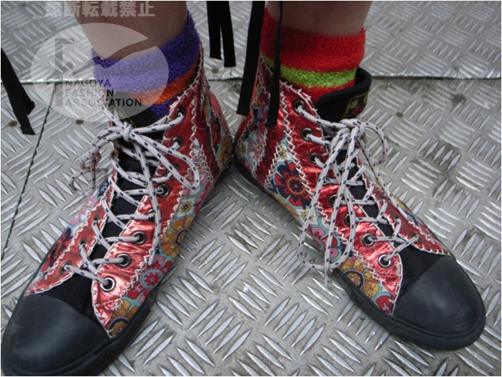| コメント | 一見きれいにまとめているかと思いきや、シャツのバトミントンの羽のような柄がとても可愛い❤ピンク、緑、黄色の三色の柄で、インナーの色合いも同じ色で合わせているところがオシャレ☆靴もハードな革靴に、あえてPOPな柄のひもを合わせているところが、名古屋っぽいMIXスタイルだ❤ |
