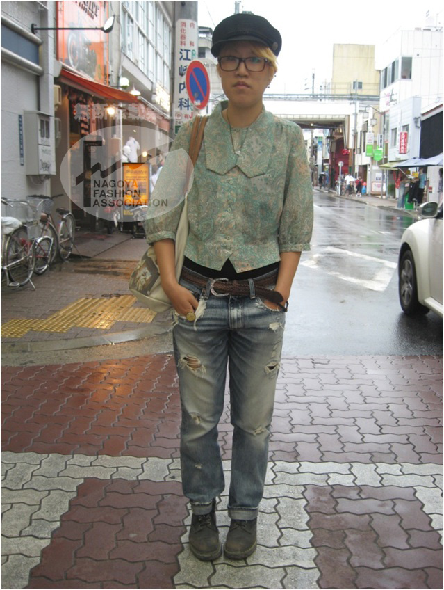 | コメント | ペイズリーの総柄ブラウスに、こだわりのダメージデニム、大きな縁のメガネ、キャスケットと主役級のアイテムを一つにまとめた名古屋らしいコーディネート!特にブラウスは、柄だけでなく、衿の形やシルエット、丈なども他のものとは一味違って個性的☆色合いなど可愛らしいアイテムも、ダメージデニムを合わせて甘辛MIXにすることで今年風に!! |