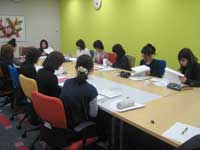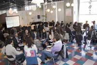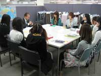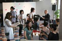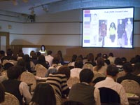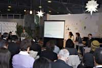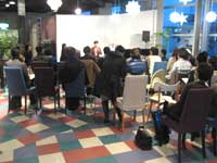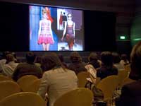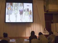 最後は、NYファッション界の事情を絡めながら、デザイナーごとにNYコレクションを紹介し、ショー会場のイメージや傾向を楽しく伝えて下さいました。宇自可氏の話をこれからの商品づくりに生かそうと熱心に耳を傾ける参加者には、「売れるものは、ほどほどのトレンド感がなくてはダメ!とにかく元気のあるモノをつくってください」とのエールをいただきました。 |